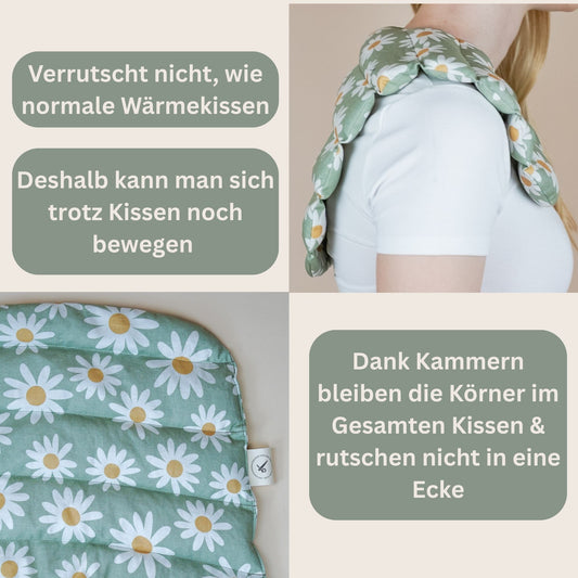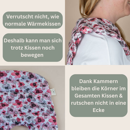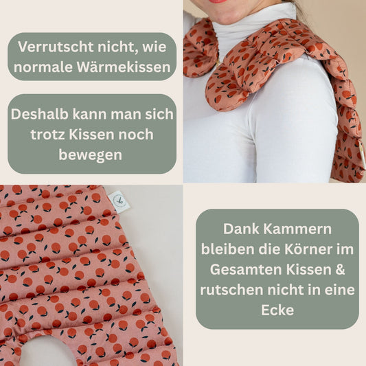 Entdeckt unsere handgefertigten Nackenkissen, gefüllt mit 100 % Bio-Dinkel – perfekt für entspannte Abende! Dank der praktischen Kammern bleibt die Füllung immer gleichmäßig verteilt und sorgt für wohltuende Wärme im Nacken- und Schulterbereich. Einfach in der Mikrowelle oder im Backofen erwärmen und genießen. Hergestellt in Deutschland, nachhaltig und mit Liebe genäht – eure neuen Lieblingskissen für mehr Wohlbefinden!
